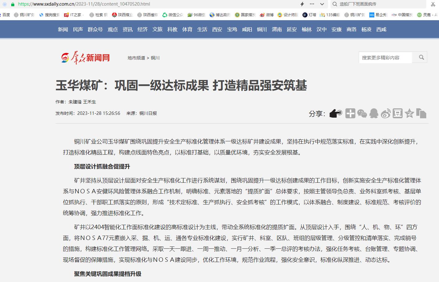 銅川礦業(yè)公司玉華煤礦圍繞鞏固提升安全生產(chǎn)標(biāo)準(zhǔn)化管理體系一級達標(biāo)礦井建設(shè)成果,堅持在執(zhí)行中規(guī)范落實標(biāo)準(zhǔn),在實踐中深化創(chuàng)新提升,打造標(biāo)準(zhǔn)化精品工程,構(gòu)建點線面特色亮點,以標(biāo)準(zhǔn)打基礎(chǔ),以質(zhì)量優(yōu)環(huán)境,夯實安全發(fā)展根基。
