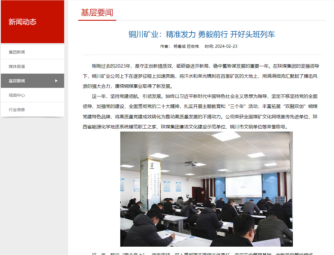 這一年,堅持黨建領(lǐng)航、引領(lǐng)發(fā)展。始終以習(xí)近平新時代中國特色社會主義思想為指導(dǎo),堅定不移堅持黨的全面領(lǐng)導(dǎo)、加強黨的建設(shè),全面貫徹黨的二十大精神,扎實開展主題教育和“三個年”活動,豐富拓展“雙融雙創(chuàng)”銅煤黨建特色品牌,將高質(zhì)量黨建成效轉(zhuǎn)化為推動高質(zhì)量發(fā)展的不竭動力。公司榮獲全國煤礦文化網(wǎng)絡(luò)宣傳先進單位、陜西省能源化學(xué)地質(zhì)系統(tǒng)模范職工之家、陜煤集團廉潔文化建設(shè)示范單位、銅川市文明單位等榮譽稱號。