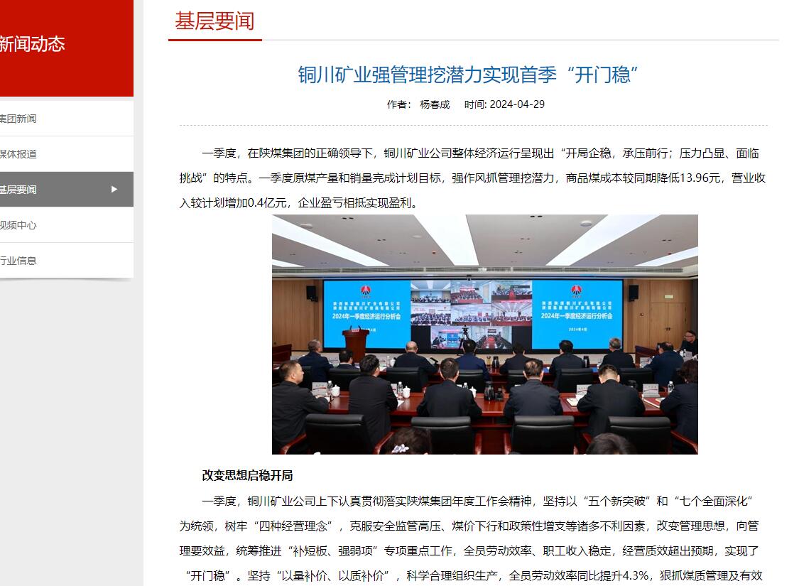 銅川礦業(yè)強(qiáng)管理挖潛力實(shí)現(xiàn)首季“開(kāi)門穩(wěn)”