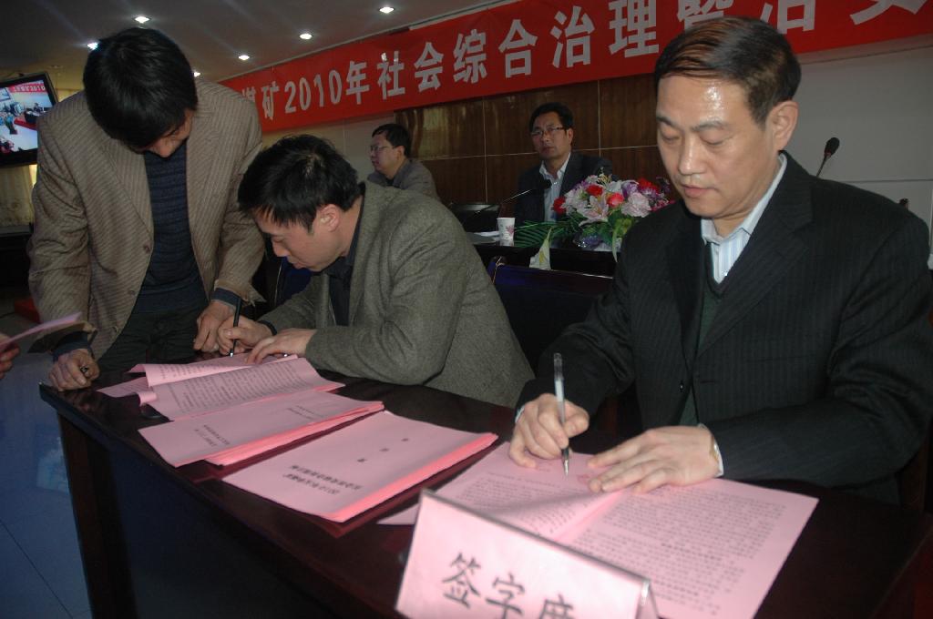 礦領(lǐng)導(dǎo)同基層單位簽訂治安穩(wěn)定責(zé)任書