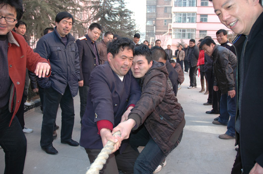 2月20日公司工會組織開展了2010年職工拔河比賽。 賽前,公司工會對參賽人員、活動場地、比賽規(guī)則和獎項設置等做了認真細致的安排,將公司10個車間工會組成參賽隊伍,進行抽簽分組,每隊由10名隊員組成。 上午9時30分,各參賽隊員列隊進入比賽場地,隨著裁判哨聲響起,兩支蓄勢待發(fā)的隊伍都憋足干勁開始了力量與技巧的博弈,活動現(xiàn)場的氣氛頓時達到高潮,拉拉隊的加油聲震耳欲聾,“加油!加油!”此起彼伏。公司領導也紛紛加入到拉拉隊中,一邊給隊員加油,一邊進行技巧指導。經(jīng)過幾輪角逐和淘汰,最終由運輸科車間比賽隊伍獲得拔河比賽冠軍。