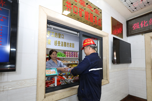 該礦井口礦嫂服務(wù)點(diǎn),女工家屬熱情的為來(lái)往的職工提供便攜食品和飲品,叮囑大家要按章指揮,按章作業(yè),牢記安全?!拔业淖饕录绨蛱庨_(kāi)線了,麻煩幫我補(bǔ)一下吧!”礦嫂在縫紉機(jī)前三兩下便將開(kāi)線部位縫補(bǔ)完成,讓職工感到貼心更暖心。