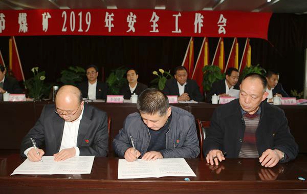 該礦生產(chǎn)礦長雷鐵山同志宣讀了《關于表彰2018年度安全生產(chǎn)先進集體和先進個人的決定》,在歡快的樂曲聲中,該礦黨政領導為獲得安全生產(chǎn)的先進集體代表頒發(fā)了獎牌,表彰先進典型,弘揚實干之風,助推安全發(fā)展。隨后,他代表礦黨政與基層采掘機運通單位領導簽訂2019年安全生產(chǎn)責任狀,明確安全主體責任,落實雙重預防機制,勉勵大家要繼續(xù)發(fā)揮礦井生產(chǎn)建設的生力軍作用,為礦井安全發(fā)展提供可靠保障。