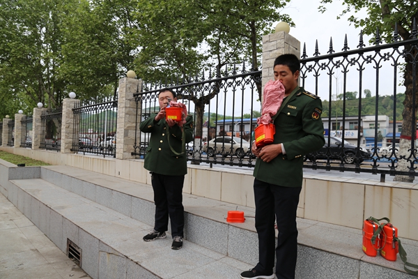 這一氣呵成的嫻熟動作,并不在培訓(xùn)教室,而是上演在陳家山煤礦體育活動廣場,讓在場的人員領(lǐng)略了本礦救護隊員的專業(yè)水準(zhǔn),同時更促進了大家正確使用自救器。