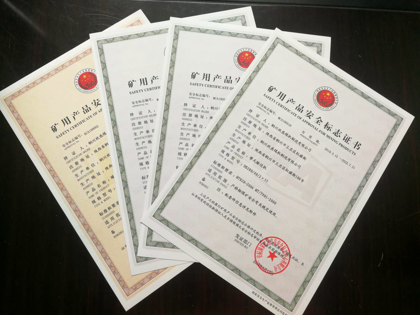 近日,從國(guó)家礦用產(chǎn)品安全標(biāo)志辦公室傳來(lái)捷報(bào),由欣盛煤機(jī)制造公司生產(chǎn)的兩大系列,四種型號(hào)的礦用產(chǎn)品同時(shí)取得國(guó)家“礦用產(chǎn)品安全標(biāo)志證書(shū)”。此證書(shū)由國(guó)家安全生產(chǎn)上海礦用設(shè)備檢測(cè)檢驗(yàn)中心審核,國(guó)家礦用產(chǎn)品安全標(biāo)志辦公室頒發(fā),標(biāo)志著該公司生產(chǎn)的?108、?133、?159緩沖托輥及DSJ80/40/2×55可伸縮帶式輸送機(jī)在質(zhì)量和安全方面得到了國(guó)家的認(rèn)可。
