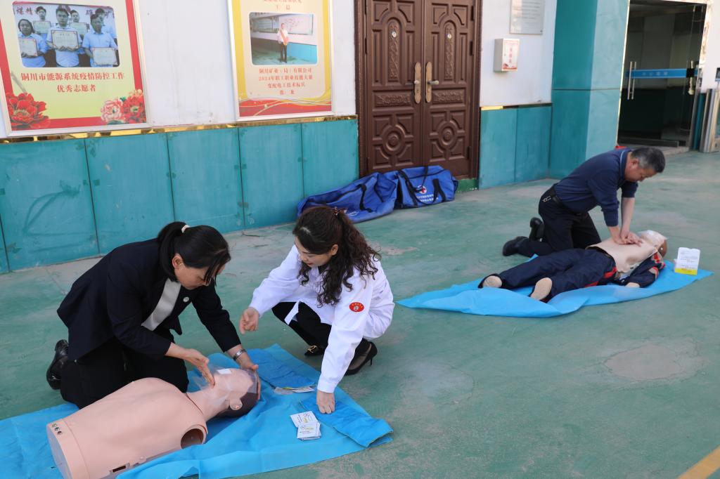 針對電力行業(yè)作業(yè)風(fēng)險點(diǎn),公司特別邀請銅川煤機(jī)醫(yī)院主治醫(yī)師帶領(lǐng)團(tuán)隊(duì)定制“電力急救課單”,重點(diǎn)突破心肺復(fù)蘇(CPR)、觸電急救、創(chuàng)傷止血、高溫中暑四大核心技能。課程摒棄冗長理論,采用“案例視頻+要點(diǎn)口訣”教學(xué)法:通過觸電事故現(xiàn)場視頻還原,解析“斷電-評估-施救”三步黃金法則;將心肺復(fù)蘇流程濃縮為“叫叫壓抬吹”五字口訣:檢查意識、呼救、胸外按壓、抬頭仰頜、人工呼吸; 利用仿真皮膚模具演示“8字形包扎法”“加壓止血術(shù)”等易學(xué)技巧。 “電力急救要直擊痛點(diǎn),止血帶怎么快速綁?中暑如何快速降溫?我們只教最可能用上的技能?!睂I(yè)的講解引發(fā)職工頻頻記錄。