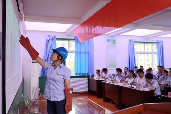 比賽分為單人值守變電站運(yùn)行開關(guān)柜停送電“手指口述”描述和雙人值守變電站及銅煤開閉所主變、開關(guān)柜“手指口述”描述兩項(xiàng)內(nèi)容,賽場(chǎng)上,選手們個(gè)個(gè)精神飽滿、沉著冷靜地借助道具和PPT演示,分別從安全防護(hù)用品、電力操作工具、安全狀況、作業(yè)程序、工作標(biāo)準(zhǔn)、安全防范等方面進(jìn)行了心想、眼看、手指、口述。選手們語言表述清晰流暢、動(dòng)作規(guī)范標(biāo)準(zhǔn),精彩的表現(xiàn)贏得了在場(chǎng)評(píng)委和觀眾的陣陣掌聲。