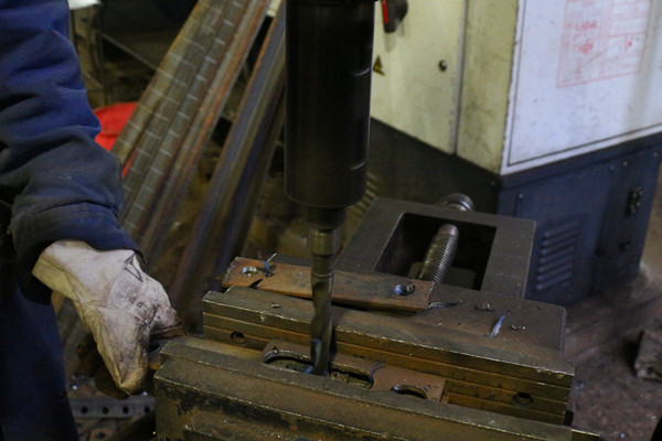 面對來自井下作業(yè)現(xiàn)場的改進建議,技術(shù)人員深入一線查看施工流程,觀察加工操作過程,為加工人員創(chuàng)新出一款“平口虎鉗吊片打眼模具”。原理很簡單,根據(jù)吊掛管路的耗材需求,明確吊片的體積、孔徑規(guī)格,新開制作一塊模具,加工人員將模具固定在虎鉗上,跟模切割,打孔、打磨即可完成鑄件。