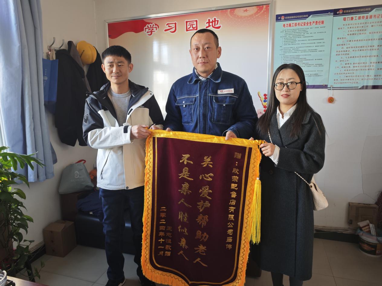 由于走時沒有留下姓名,傷者家屬對好心人念念不忘,通過各種方式尋找呂偉,26日,傷者家屬來到欣榮公司,為職工呂偉送上“ 關(guān)心愛護(hù)幫助老人 不是親人勝似親人”的錦旗,以表達(dá)感激之情。
