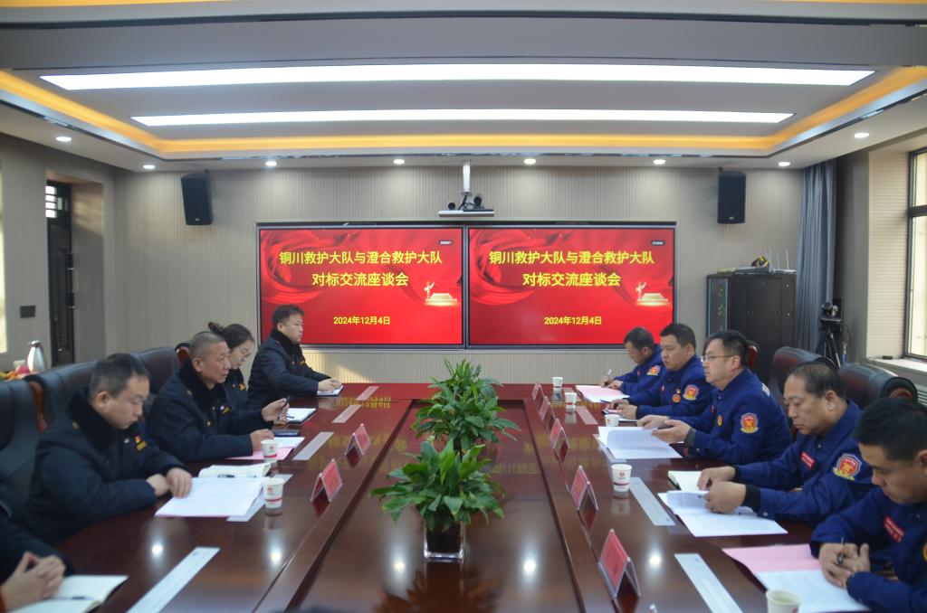 在對(duì)標(biāo)交流座談會(huì)上,雙方就隊(duì)伍組織機(jī)構(gòu)、人員配置、隊(duì)伍建設(shè)、戰(zhàn)備執(zhí)勤、應(yīng)急演練、技能訓(xùn)練、標(biāo)準(zhǔn)化建設(shè)、技術(shù)裝備管理、黨建工作融入等工作進(jìn)行了深入交流探討,并觀看了澄合礦業(yè)救護(hù)大隊(duì)視頻宣傳片。隨后,一行人實(shí)地參觀了該大隊(duì)綜合樓、應(yīng)急指揮調(diào)度中心、全員考試機(jī)房、應(yīng)急救援實(shí)訓(xùn)基地、儀器儀表維修室等地,部門(mén)對(duì)接查看了各項(xiàng)相關(guān)資料,積極對(duì)標(biāo)先進(jìn)管理經(jīng)驗(yàn),虛心學(xué)習(xí)和借鑒好的經(jīng)驗(yàn)與做法。