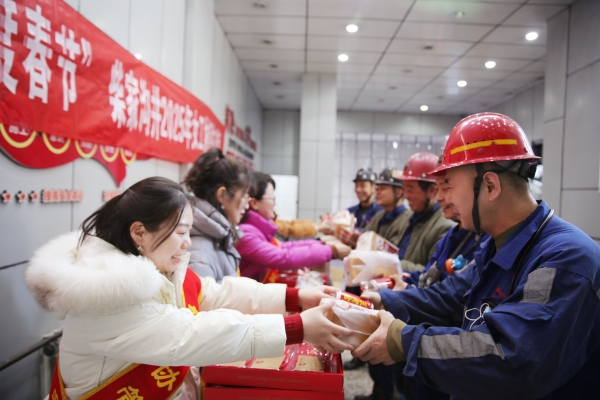 春節(jié)期間,柴家溝井組織女工協(xié)管員在井口開展新春井口送溫暖活動,為一線干部職工送上節(jié)日關(guān)懷和祝福。