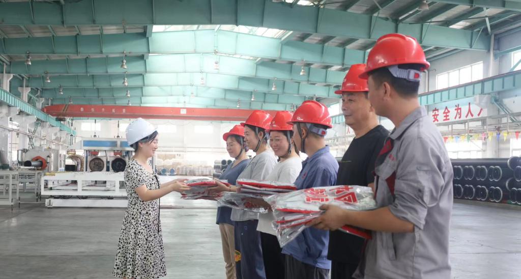 “拿到新工服的那一刻,心里特別高興!”高壓膠管車間王師傅穿上嶄新的夏季工服,臉上露出了滿意的笑容,“之前的春秋工服有點(diǎn)厚,天熱的時(shí)候干活總覺(jué)得悶得慌,這新工服又輕又透氣,干活都利索多了?!辈粌H是王師傅,其他職工也紛紛為新工服點(diǎn)贊。