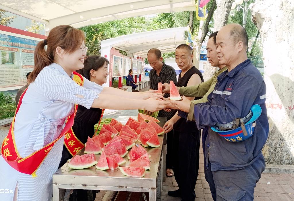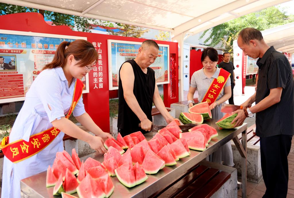 活動現(xiàn)場,該礦工會將精心選購的大西瓜提前切好,當上下班職工們陸續(xù)走來,女工協(xié)管員們立刻迎上去,把清甜多汁的西瓜遞到礦工手中:“師傅,您辛苦了!吃塊西瓜解解暑!”同時圍繞夏季防暑、作業(yè)安全,用嘮家常式的話語,提醒職工別因天熱疏忽安全,要做好防護、規(guī)范操作。礦工們邊啃瓜、邊點頭,紛紛表示為了企業(yè)的安全發(fā)展和家庭的幸福美滿,牢記囑咐,按章作業(yè)。