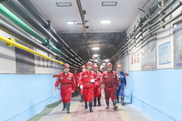 隨后,對(duì)標(biāo)組人員分為地面、井下兩組進(jìn)行實(shí)地參觀。地面組先后前往調(diào)度室、二號(hào)公寓樓、職工餐廳、十千伏變電所、工業(yè)廣場(chǎng)、黨建活動(dòng)室等場(chǎng)所,以現(xiàn)場(chǎng)觀摩、聽(tīng)取介紹的方式,對(duì)礦井加強(qiáng)基礎(chǔ)設(shè)施建設(shè)、建設(shè)綠色礦區(qū)、改善職工生產(chǎn)生活環(huán)境等方面的具體工作進(jìn)行了解。井下組在運(yùn)人暗斜井、井底車(chē)場(chǎng)、42227工作面等場(chǎng)所進(jìn)行參觀,詳細(xì)了解了該礦在安全管理、智能化建設(shè)、系統(tǒng)運(yùn)輸?shù)确矫娴墓ぷ髑闆r和取得的成果。