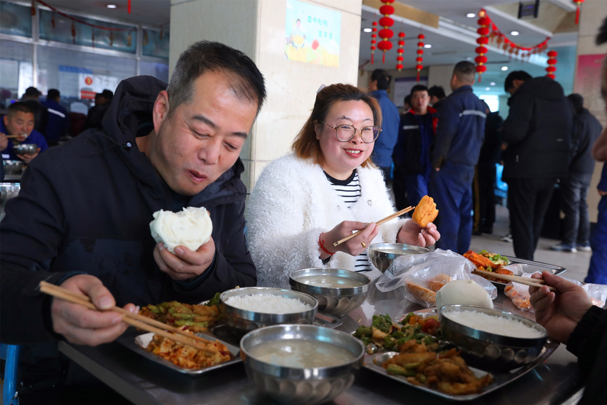 從熱氣騰騰的主食到風(fēng)味各異的配菜,從精心調(diào)制的湯羹到新鮮可口的水果,當(dāng)蒸碗、炸食、熱菜涼菜、水果湯羹端上餐桌,每一道菜品飽含著來自礦井對(duì)職工的新年祝福與安全叮囑。