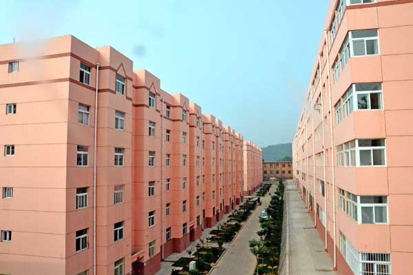第二張名片:“唯美東坡”,即家屬區(qū)連片成景的粉紅色住戶小區(qū)