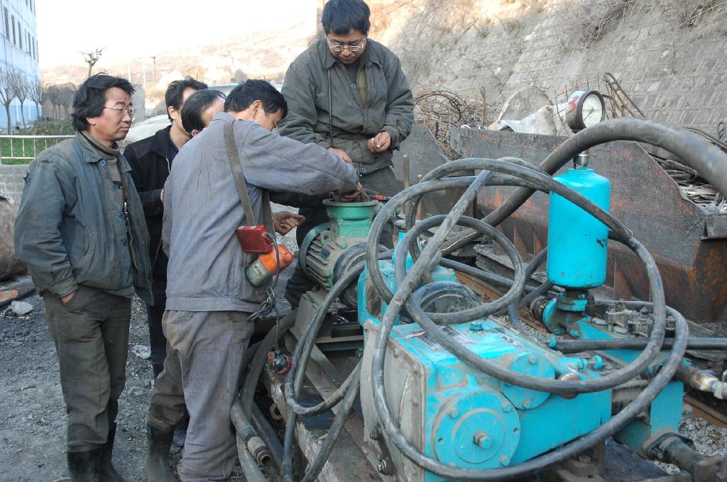 按照礦井下半年整體工作規(guī)劃,運輸區(qū)在11月份對井下2000多米長的運輸大巷和400多米長的軌道巷展開噴白灑水工作,時間緊,任務(wù)重,而且最麻煩的是礦井沒有現(xiàn)成的噴白灑水設(shè)備,雖說可申請購買,但在時間上就會影響工期進(jìn)度。當(dāng)運輸區(qū)黨政領(lǐng)導(dǎo)在班前會上提出此問題后,多數(shù)職工紛紛建議自行研發(fā)改造。經(jīng)過慎重商議后,區(qū)隊領(lǐng)導(dǎo)主動與礦動力科進(jìn)行協(xié)商,積極調(diào)配區(qū)隊力量對機器進(jìn)行技術(shù)改造。11月30日,運輸區(qū)齊集全隊精干力量,對BW-150型泥漿泵進(jìn)行技術(shù)改造。區(qū)隊領(lǐng)導(dǎo)和技術(shù)人員首先從機器的結(jié)構(gòu)、性能入手,對設(shè)備的技術(shù)參數(shù)和運行方式進(jìn)行了解拆分,同時結(jié)合井下作業(yè)現(xiàn)場的環(huán)境和現(xiàn)場使用要求對設(shè)備進(jìn)行配套改造。在對機器自身轉(zhuǎn)動速率進(jìn)行優(yōu)化的關(guān)鍵時刻,技術(shù)員小心翼翼的對設(shè)備的壓力和流量進(jìn)行穩(wěn)定調(diào)試,確保噴灑粉水混合物在恒定的壓力流量下正常工作。在外部設(shè)備裝置改造時,大家集思廣益,一致建議將管路和噴灑進(jìn)出口裝置統(tǒng)一為整體進(jìn)行改造,將裝料箱和設(shè)備連為一體,這樣就使原來固定作業(yè)的方式變?yōu)橐苿邮阶鳂I(yè),這不僅減少了管路使用長度、縮短了設(shè)備移動時間,而且提高了作業(yè)安全系數(shù)和工作效率。