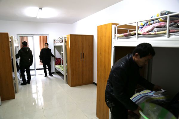 80名職工到達(dá)冶坪煤礦宿舍樓下后,有條不紊地拿著房門鑰匙進(jìn)入宿舍,收拾行李,擺放生活用品。