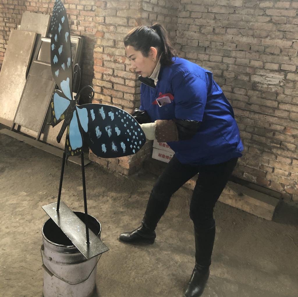 “這些鐵板畫真是下了一番功夫,從開始設(shè)計再到涂色,直到完成一個個生動形象的作品?!痹摴句N售部李英有感而發(fā)。