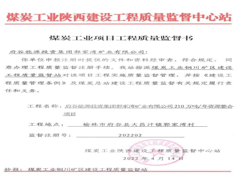 近日,銅川礦區(qū)工程質(zhì)量監(jiān)督站受省能源局煤炭工業(yè)陜西建設(shè)工程質(zhì)量監(jiān)督中心站指派,對(duì)府谷能源投資集團(tuán)郭家灣礦業(yè)有限公司210萬(wàn)噸/年資源整合項(xiàng)目實(shí)施質(zhì)量監(jiān)督管理。