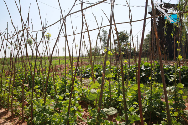該礦自3月份以來,按照“治理與景觀資源開發(fā)利用相結(jié)合”的治理模式,在前期治理基礎(chǔ)上,全面啟動了矸石山綜合治理工程。如今的矸石山上,一派生機盎然綠意濃濃的景象,菜園里黃瓜、豆角、西紅柿等時令蔬菜長勢喜人,道路兩旁、田壟邊上栽種的國槐、法桐發(fā)了新芽,垂柳抽出了新枝,展現(xiàn)著婀娜的身姿,沿著道路繼續(xù)向前,左邊梯田里綠油油的香根草整齊的排列著,右邊平臺上,成片的格?;幭嗑`放,在綠葉的映襯下顯得無比嬌艷,微風(fēng)吹過,花朵輕輕搖曳,仿佛在和你微笑招手,北面的下平臺,一排節(jié)水噴灑裝置正在不停的灑著水,田地里播撒的草籽已經(jīng)長的有一寸多高了,據(jù)工作人員介紹,下平臺植被的成活率不高,能夠形成目前這樣的規(guī)模,實屬不易。