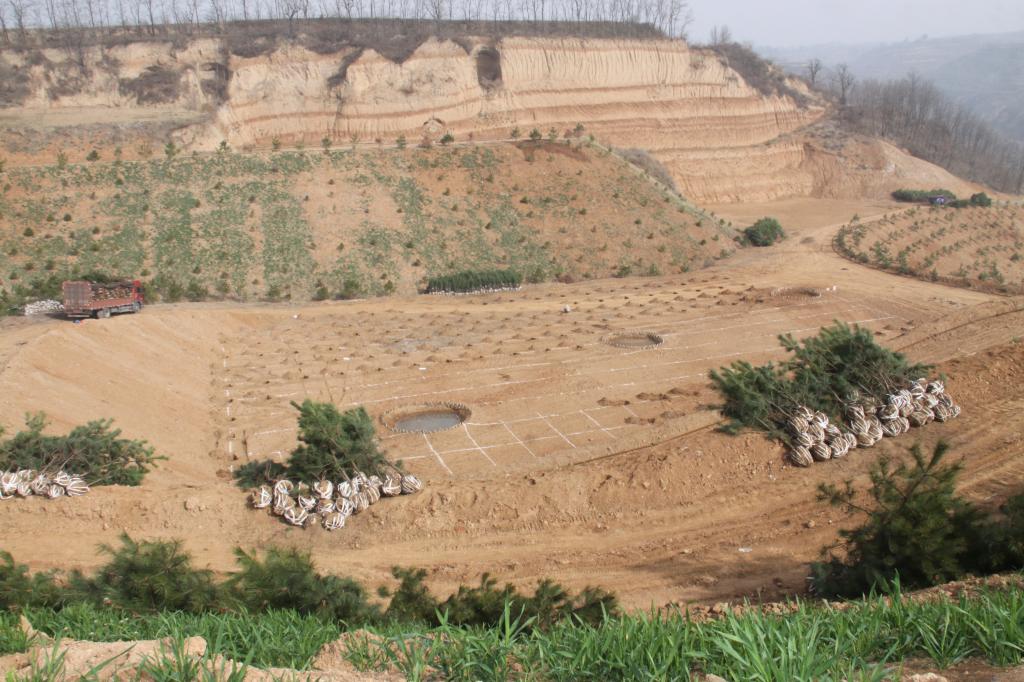 目前,該公司已完成了矸石山綠化的整體規(guī)劃,樹坑的挖掘,并成功種植了桃樹350余棵,白皮松、油松700余棵。該公司正在對新栽種的樹木進行修剪,灌溉,并對灌溉管道進行鋪設。后期將要栽種的白皮松等苗木也已運到植樹現(xiàn)場。