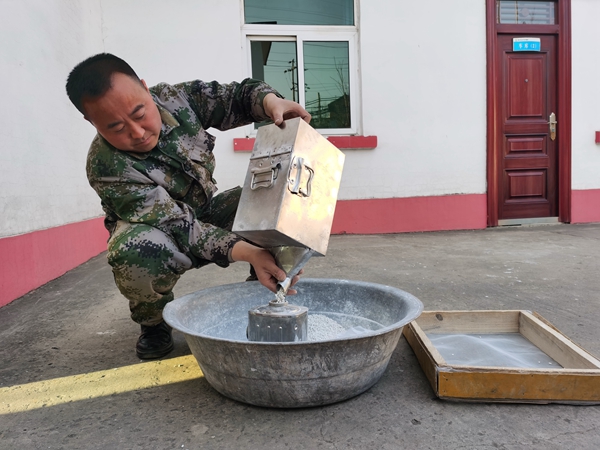 該礦救護中隊擔負著礦井緊急救援和輔助工作,每名救護隊員不論是日常工作還是體能訓練都離不開呼吸器,而且每次使用過后都要更換呼吸器藥罐里的氫氧化鈣,以確保救護隊員的人身安全。之前救護隊員在給呼吸器藥罐換藥時,將氫氧化鈣倒在一個大籮筐里,將粉末和渣滓篩掉,然后用手一捧一捧的往藥罐里裝,費時費力還容易掉落浪費。