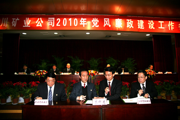 會上,張仿文同志宣讀了2008—2009年度紀檢監(jiān)察工作先進集體和先進個人表彰決定。公司領(lǐng)導為受表彰的先進集體頒發(fā)了獎牌。王石凹礦、下石節(jié)礦、奧博集團做了經(jīng)驗交流發(fā)言;玉華礦、一五三廠、徐家溝公司進行了書面交流。公司黨政領(lǐng)導杜樹山、宋志剛與各單位黨政簽訂了2010年黨風廉政建設(shè)目標責任書。