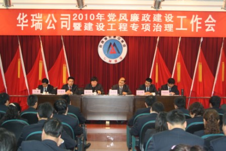 3月29日下午,陜西煤業(yè)化工建設(shè)集團(tuán)華瑞公司2010年黨風(fēng)廉政建設(shè)暨建設(shè)工程專(zhuān)項(xiàng)治理工作會(huì)議在四樓會(huì)議室召開(kāi),近80名黨員干部及管理人員參加了會(huì)議。會(huì)議由黨委委員、總工程師周海珍主持。