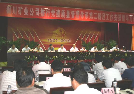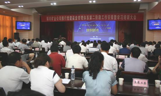6月28日下午,銅川礦業(yè)公司黨委在煤業(yè)賓館餐廳二樓會議室召開推行黨建質(zhì)量管理體系第二階段工作安排暨學習培訓大會。內(nèi)容是總結(jié)公司黨委推行黨建質(zhì)量管理體系第一階段的主要工作,安排部署第二階段工作任務,動員各級組織、領導提高認識,堅定信心,克服畏難情緒,加大工作力度,扎扎實實地做好各項工作,為公司實現(xiàn)黨建質(zhì)量管理體系工作目標而努力奮斗。