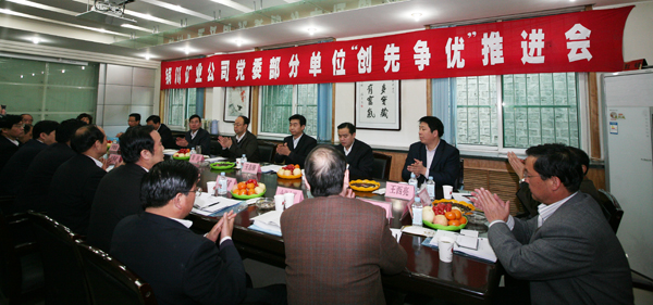 按照中央要求,這次創(chuàng)先爭優(yōu)活動,從2010年4月開始,到2012年7月結(jié)束,歷時兩年多,分兩個階段:第一階段,從2010年6月到2011年6月,著重圍繞迎接建黨90周年開展活動;第二階段,從2011年7月開始,著重圍繞迎接黨的十八大開展活動。銅川礦業(yè)公司在開展“深入開展創(chuàng)先爭優(yōu)活動動員大會”,“創(chuàng)先爭優(yōu)”點評活動結(jié)束后,為了扎實開展好今年的創(chuàng)先爭優(yōu)活動,2011年3月25日在下石節(jié)礦召開了部分單位創(chuàng)先爭優(yōu)活動推進(jìn)會,來自8對生產(chǎn)礦井、鐵運公司、供應(yīng)處、史家河社區(qū)、桃園社區(qū)黨委(黨總支)書記、組織部長,公司黨委辦公室、組織部、宣傳部、機關(guān)工委、礦工報社負(fù)責(zé)人等30余人參加了會議。會議由公司組織部長王志峰主持。
