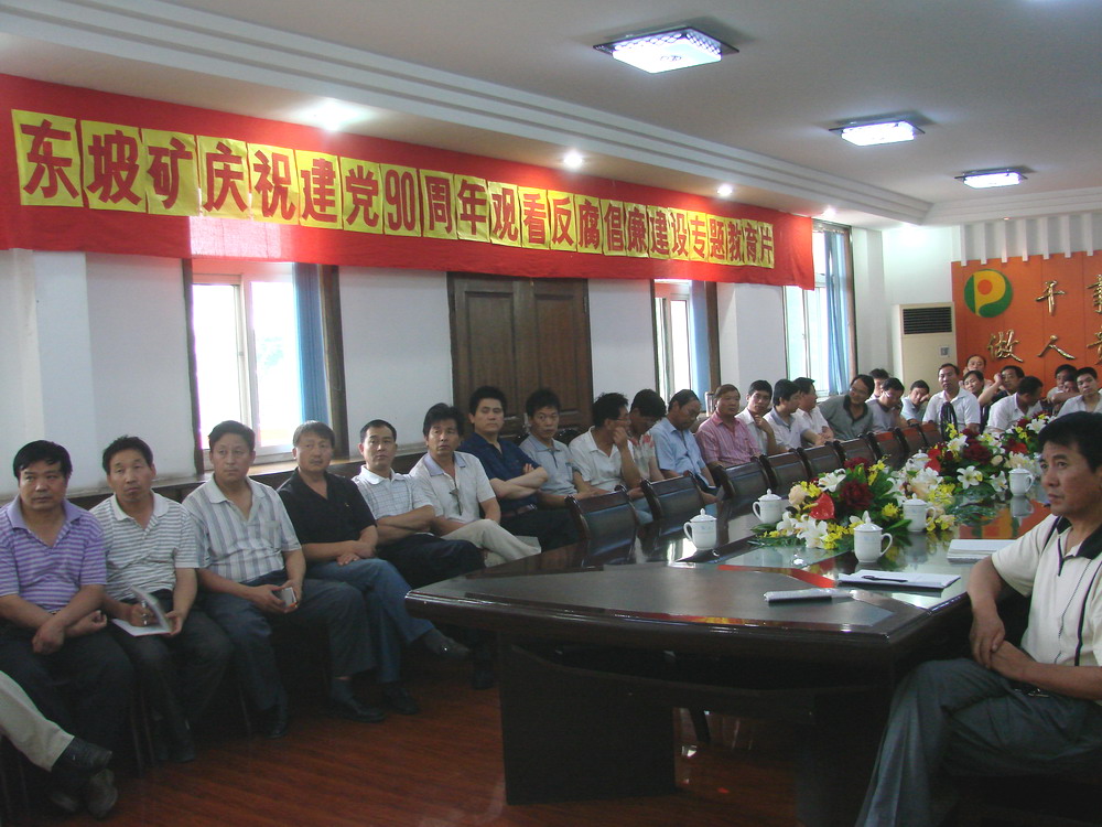 日前,東坡礦在三樓會議室舉行慶祝建黨90周年觀看反腐倡廉建設(shè)專題教育片活動,來自全礦各單位的136名副科級以上干部分批次觀看了教育片。