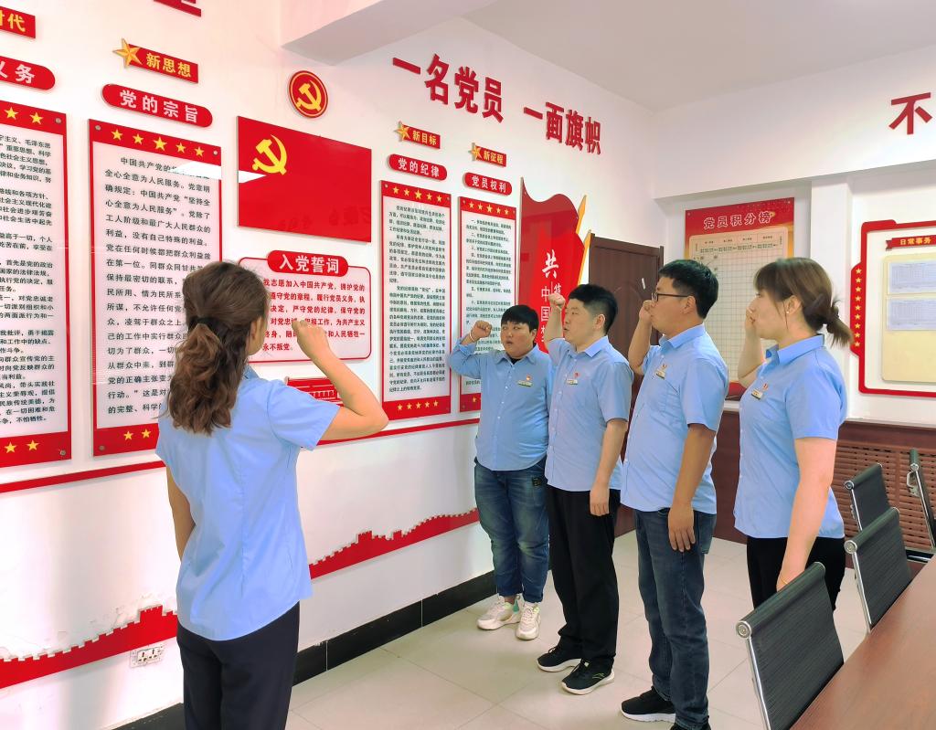 重溫入黨誓詞表心聲。“我志愿加入中國共產(chǎn)黨,擁護(hù)黨的綱領(lǐng),遵守黨的章程,履行黨員義務(wù),執(zhí)行黨的決定,嚴(yán)守黨的紀(jì)律,保守黨的秘密,對黨忠誠,積極工作,為共產(chǎn)主義奮斗終身,隨時準(zhǔn)備為黨和人民犧牲一切,永不叛黨?!边@80個字,承載著一代代共產(chǎn)黨人的奮斗與信仰。全體黨員佩戴黨員徽章、整齊列隊(duì)、面向黨旗肅立。胸前的黨徽與面前的黨旗交相輝映,熠熠生輝。大家面對鮮紅黨旗,高舉右手,以整齊劃一的動作重溫入黨誓詞。隨著領(lǐng)誓人洪亮的聲音,大家齊聲莊嚴(yán)宣誓,那鏗鏘有力的聲音在室內(nèi)回蕩,如同激昂的戰(zhàn)歌,傳達(dá)出身為共產(chǎn)黨員的強(qiáng)烈自豪感和神圣使命感。重溫入黨誓詞后,全體黨員紛紛表示,在今后的工作中將永葆共產(chǎn)黨員政治本色,繼續(xù)以更加飽滿的激情、更加昂揚(yáng)的斗志、更加扎實(shí)的作風(fēng),真抓實(shí)干、攻堅克難、砥礪奮進(jìn),推動公司各項(xiàng)事業(yè)再上新臺階,貢獻(xiàn)自己的一份力量。