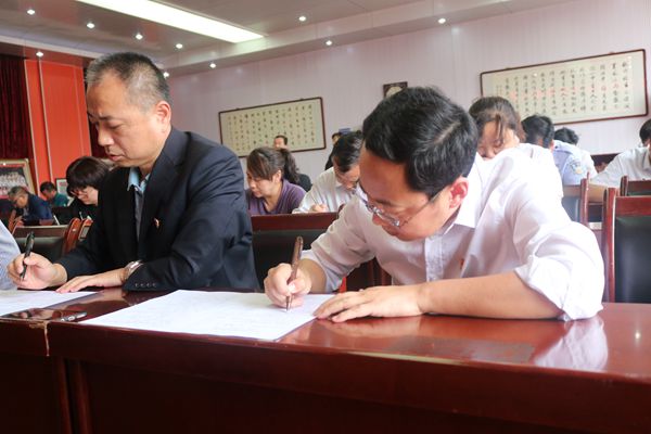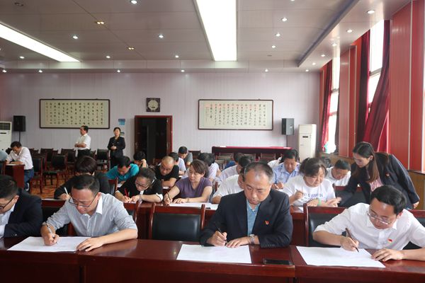 下午兩點半整,該公司全體科級干部整齊有序坐在五樓會議室。現(xiàn)場進行試卷拆封,并發(fā)放給“考生”答卷。試卷涵蓋選擇、填空、附加題等多種形式。主要包括習(xí)近平新時代中國特色社會主義思想、組織宣傳黨建基礎(chǔ)知識等黨員干部應(yīng)知必會內(nèi)容,同時也結(jié)合公司實際設(shè)置了公司經(jīng)營發(fā)展知識點。這次考試從參與度上確保到全體科級領(lǐng)導(dǎo)參與其中,從保密程度上做到了完全的保密,閉卷考試,而且不允許帶手機和夾帶。