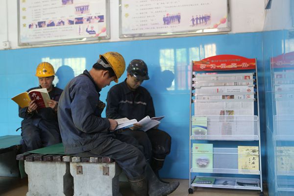 下石節(jié)煤礦為了進(jìn)一步拓寬職工汲取知識“養(yǎng)分”的途徑和方法,在井口地面候車室設(shè)立了一個學(xué)習(xí)閱覽角,入井前職工在這里利用碎片化的時間為自己“充電”,營造濃厚的學(xué)習(xí)氛圍。