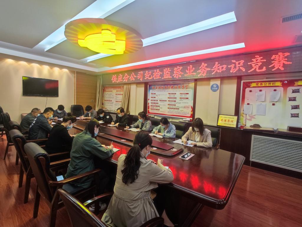 為進(jìn)一步提升基層紀(jì)檢監(jiān)察干部的黨紀(jì)業(yè)務(wù)知識水平,促進(jìn)紀(jì)檢工作人員學(xué)全、學(xué)深、學(xué)細(xì)。日前,供應(yīng)分公司組織專職紀(jì)檢干部和各支部紀(jì)檢委員開展紀(jì)檢監(jiān)察業(yè)務(wù)知識答題競賽活動,并以賽促學(xué),以學(xué)促練,努力鍛造執(zhí)紀(jì)鐵軍,為企業(yè)高質(zhì)量發(fā)展保駕護(hù)航。
