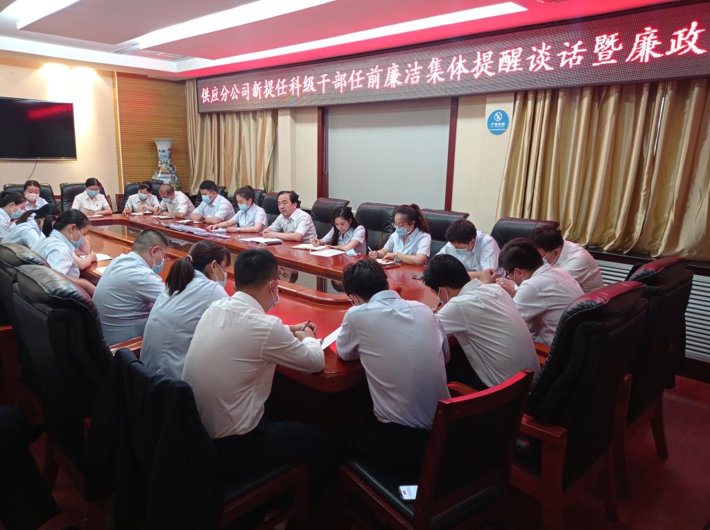 為認真貫徹黨風(fēng)廉政教育和廉潔文化進崗位進家庭的要求,近日,供應(yīng)分公司對新提任的科級干部進行了任前廉潔集體談話暨廉政知識考試,希望年輕干部謹(jǐn)小慎微恪守從業(yè)紀(jì)律,真正扣好“第一??圩印?。