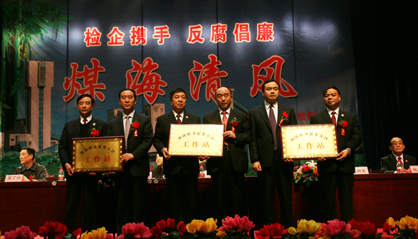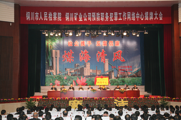 陜西省第二家、陜西煤化集團(tuán)和銅川市首家檢企預(yù)防職務(wù)犯罪工作網(wǎng)絡(luò)中心揭牌儀式,10月25日上午在銅川礦工俱樂部隆重舉行。隨著省高檢副檢察長(zhǎng)史建泉,陜西煤化集團(tuán)公司紀(jì)委書記吳衛(wèi)平,銅川市委常委、紀(jì)委書記趙曉明,銅川市委常委、政法委書記袁丁興,銅川市檢察院檢察長(zhǎng)王其敏,銅川礦業(yè)公司總經(jīng)理(局長(zhǎng))宋志剛,公司(局)黨委書記黃河等領(lǐng)導(dǎo)參加會(huì)議并為網(wǎng)絡(luò)中心揭牌,標(biāo)志著檢企聯(lián)手共同預(yù)防職務(wù)犯罪的一種新的工作形式在銅川礦業(yè)公司正式啟動(dòng)。