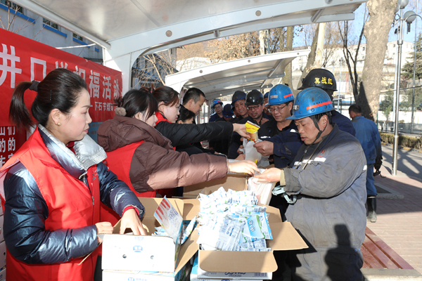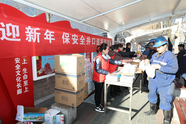 在該礦井口“慶新年、送祝福、囑安全”慰問活動(dòng)現(xiàn)場,身穿紅色馬甲的女工、安全協(xié)管員為上班的職工師傅們送上第一份安全祝福,將純牛奶、面包、雞蛋等慰問品遞到每一位職工手中,深情地叮囑礦工兄弟們,時(shí)刻牢記安全為天思想,增強(qiáng)自?;ケB?lián)保能力,提升安全生產(chǎn)意識(shí),以飽滿的精神和務(wù)實(shí)的行動(dòng)投入安全生產(chǎn)工作工作當(dāng)中,扎根煤海再立新功。