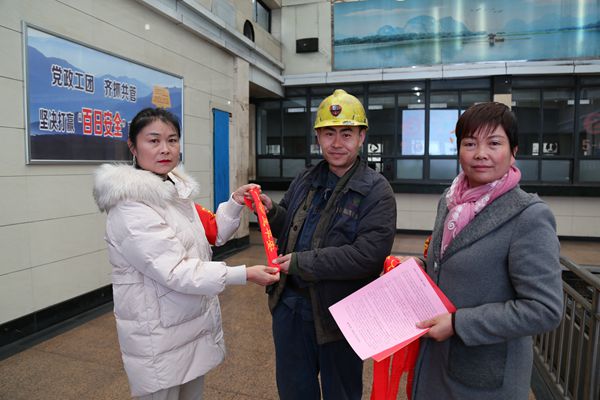 “小崔,工作時(shí)一定要注意著安全?!薄粭l條寓意平安的紅腰帶送到職工們的手上,一聲聲貼心的安全祝福傳到職工心里。近日,陳家山煤礦女工委用這樣一種特殊的方式慰問著入井前的職工朋友們。