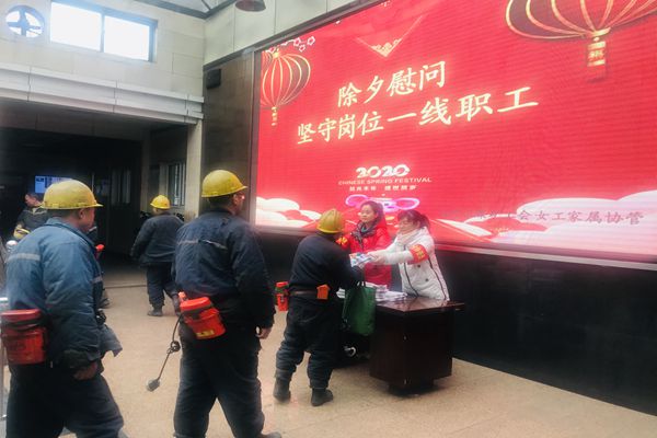 井口候車大廳里,巨幅LED電子屏顯示著“除夕慰問堅守崗位一線職工”的字樣,紅色燈籠寓意著吉祥如意,歡聲笑語,處處洋溢著濃濃的節(jié)日氛圍。女工家屬們一邊送祝福,一邊囑安全,并不時提醒大家,節(jié)日期間思想比較活躍,容易產(chǎn)生麻痹大意的思想,一定要將安全牢記心頭、遵章作業(yè)、安全生產(chǎn)!一份禮物一份祝福,一句叮嚀一片溫情,為礦工師傅們送上節(jié)日的慰問,讓堅守崗位的廣大職工深切感受到節(jié)日溫暖,企業(yè)關(guān)懷。大家紛紛表示,做好安全工作不僅是自己個人的事,更是礦山大家庭的事,一定堅守好崗位、履行好職責(zé),確保春節(jié)期間礦井平安、祥和。