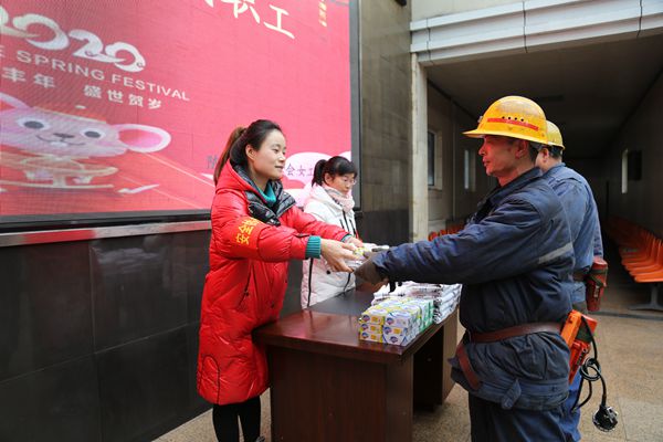 喜迎新年送溫暖,聲聲祝福保安全。除夕這天,陳家山煤礦女工委組織家屬協(xié)管早早來到井口服務(wù)站,一陣忙活準(zhǔn)備后,親手將精心準(zhǔn)備的毛巾、香皂等慰問品發(fā)放到春節(jié)期間堅守崗位的井上下職工手中,并熱情地向他們致以節(jié)日問候,囑咐他們要時刻緊繃安全弦,堅守好工作崗位。