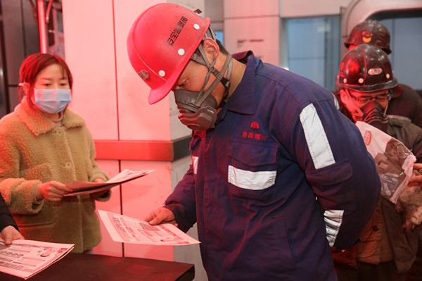 2月3日早上,在機(jī)電隊(duì)學(xué)習(xí)室,青年職工王瑤正在把印有疫情防控知識(shí)的宣傳單分發(fā)到職工手中,叮囑大家要佩戴口罩,勤洗手,不造謠,不傳謠,不信謠。