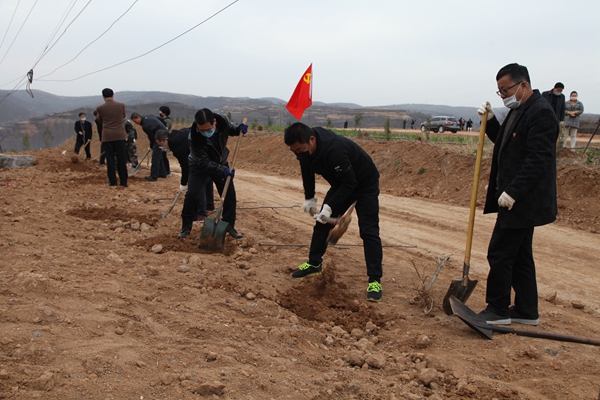 12日上午,有的同志從家里帶來(lái)鐵鍬、尖鎬等植樹(shù)工具,在該礦黨政組織下自駕車(chē)來(lái)到紅土矸山開(kāi)展植樹(shù)活動(dòng)。在植樹(shù)現(xiàn)場(chǎng),黨旗隨風(fēng)飄揚(yáng),植樹(shù)人員干勁十足。該礦黨政領(lǐng)導(dǎo)武永發(fā)、高金宇帶領(lǐng)大家挖坑栽樹(shù)。大家團(tuán)結(jié)協(xié)作,有的揮鎬挖坑,有的培土,有的將一棵棵樹(shù)苗認(rèn)真的栽入坑中,扶正、填土、壓實(shí)、澆水植樹(shù)環(huán)節(jié)一絲不茍,認(rèn)真把握好每個(gè)植樹(shù)細(xì)節(jié),確保種植一棵、成活一棵、美化一片。