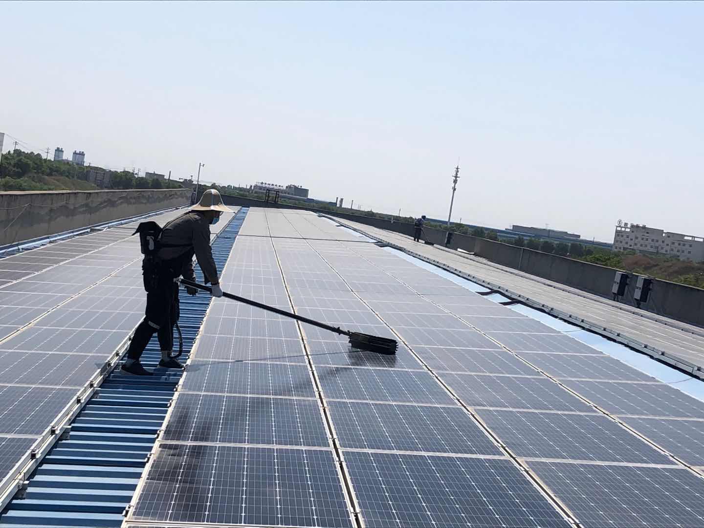 欣榮公司新區(qū)6MWp分布式光伏發(fā)電站,光伏板數(shù)量總計(jì)達(dá)20868塊,大都分布在屋頂。人工清掃難度大、工作量重。為安全、高效地完成光伏板清潔除塵任務(wù),公司根據(jù)現(xiàn)場(chǎng)實(shí)際情況,特制定清掃方案,并對(duì)團(tuán)員青年清掃隊(duì)伍進(jìn)行了風(fēng)險(xiǎn)預(yù)控和安全技術(shù)交底工作,保證團(tuán)員青年清掃隊(duì)伍的人身及設(shè)備安全。團(tuán)員青年克服困難,認(rèn)真仔細(xì)并耐心清掃,在一次次揮汗下,歷時(shí)兩天順利完成光伏清掃工作。