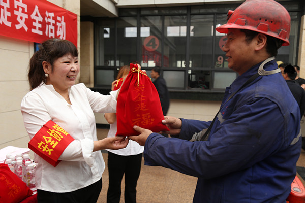 6月11日下午,陳家山煤礦工會女工委在井口開展“獻愛心 促安全”活動,為一線職工們送上精美的安全福袋和安全囑托。