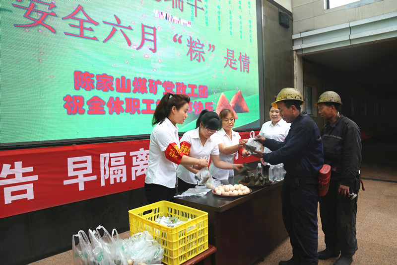 6月25日,陳家山煤礦工會(huì)組織女工協(xié)管員在井口候車室開(kāi)展“濃情端午送祝福 囑安全”活動(dòng),向職工們送上端午祝福和安全囑托。