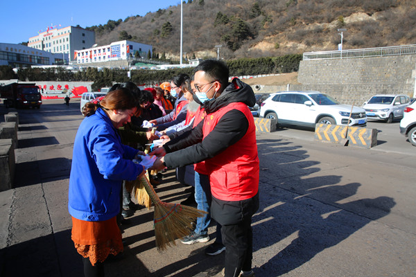 隨后,團(tuán)員青年們拿著掃帚、垃圾鏟等工具,對(duì)礦區(qū)大門及磅房道路上的枯樹葉、碎紙屑、煙頭等雜物進(jìn)行了清掃,特別是不易發(fā)覺的衛(wèi)生死角,清掃后的道路干干凈凈,充分體現(xiàn)了礦井“眾人拾柴火焰高”的企業(yè)文化精神。