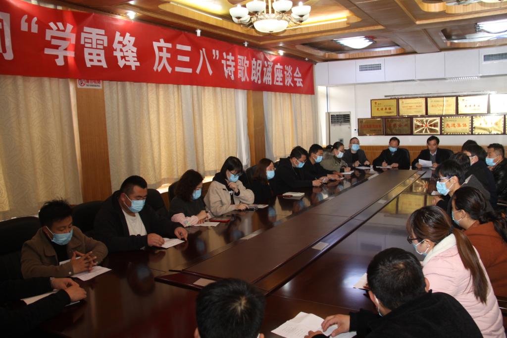 在上午開(kāi)展的“學(xué)雷鋒、慶三八”詩(shī)歌朗誦座談會(huì)中,該公司黨政領(lǐng)導(dǎo)帶頭朗誦,員工們圍繞詩(shī)歌朗誦座談會(huì)主題,結(jié)合自身工作實(shí)際和興趣愛(ài)好,紛紛朗讀了自己最喜歡的詩(shī)歌。朗讀還以吐字清晰、聲音宏亮、聲情并茂、朗誦富有韻味和表現(xiàn)力為標(biāo)準(zhǔn),讓參加人員自己進(jìn)行點(diǎn)評(píng)。營(yíng)造了“溫馨、融洽、和諧”的良好氛圍。此次活動(dòng)的開(kāi)展,不僅增進(jìn)了機(jī)關(guān)團(tuán)隊(duì)的凝聚力。也進(jìn)一步弘揚(yáng)了中華民族傳統(tǒng)文化的精髓,豐富了機(jī)關(guān)文化活動(dòng)。
