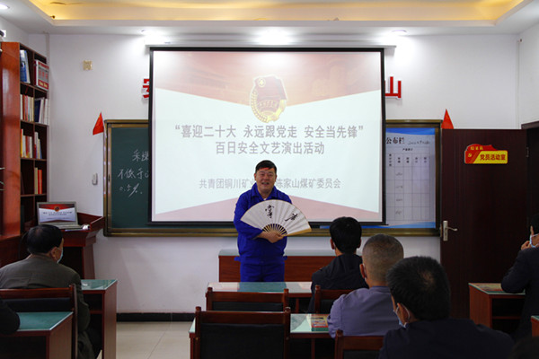 “喜迎二十大、奮戰(zhàn)四季度、全力保安全”百日安全生產行動期間,陳家山煤礦團委在礦黨政的大力支持和正確領導下,近日,精心組織青年志愿者深入基層區(qū)隊為礦工兄弟們送上了“私人訂制”的安全文藝節(jié)目,為礦井安全生產加油鼓勁。